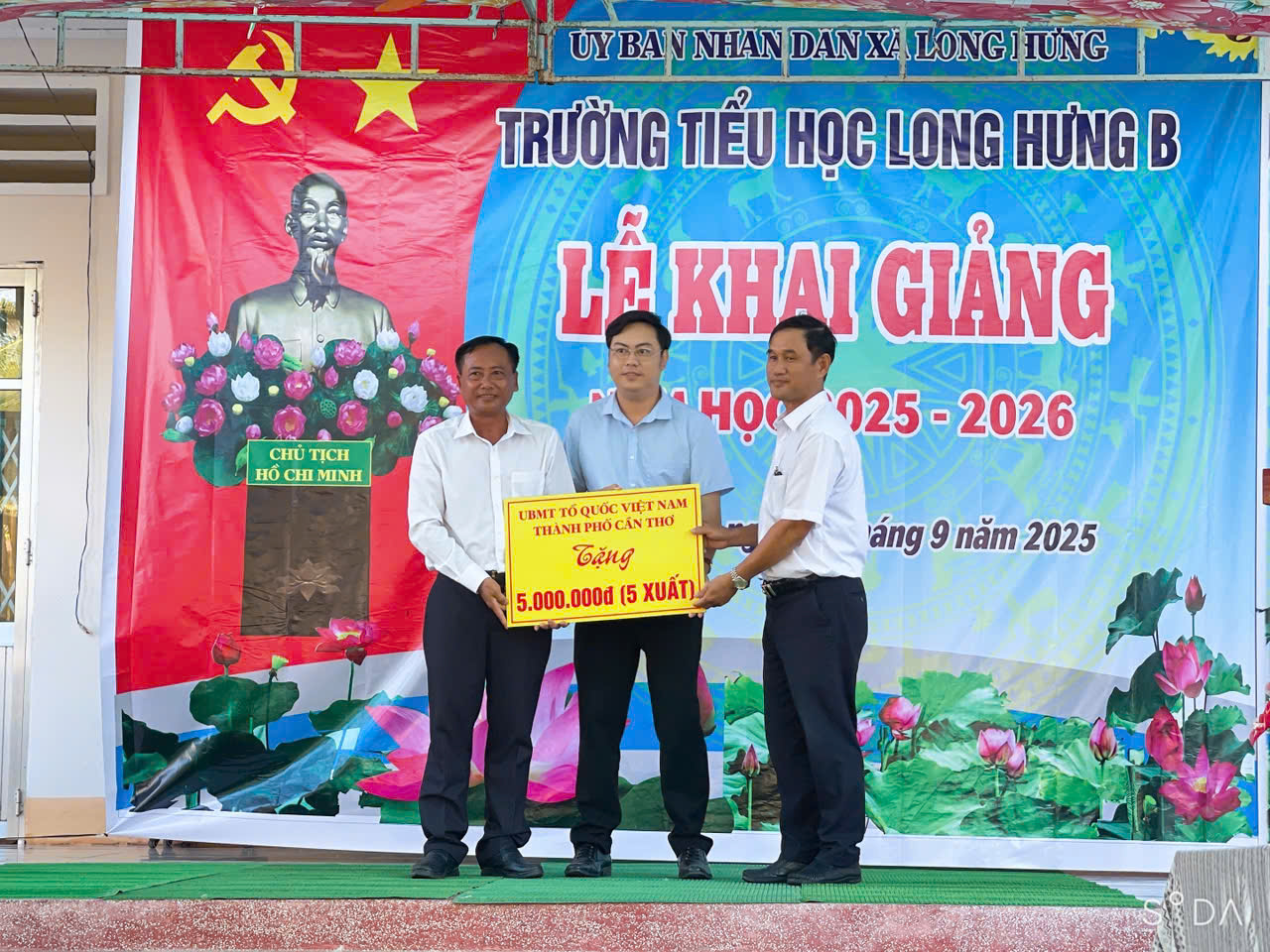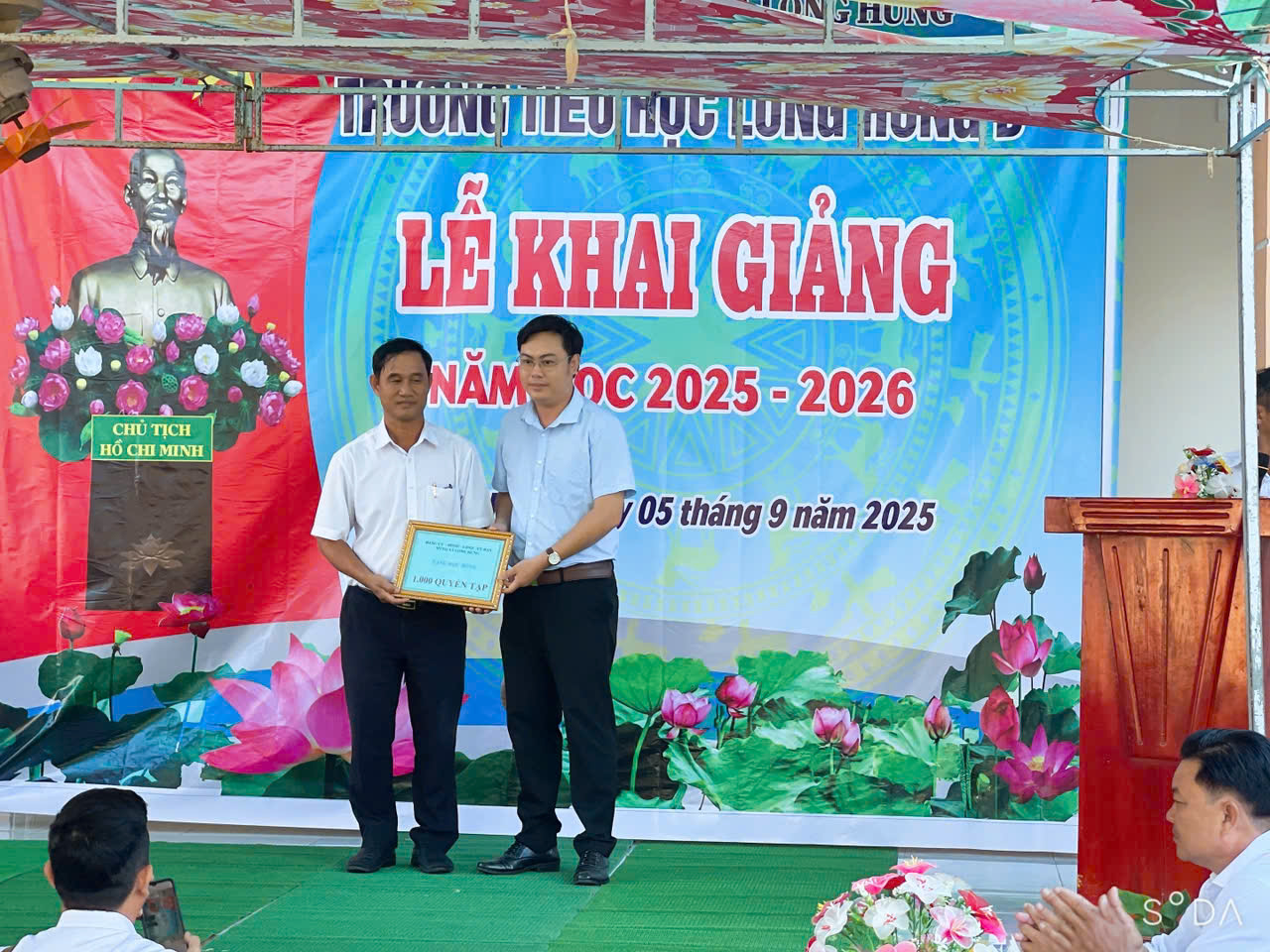 ***** Nhân dịp lễ khai giảng Quỹ vì người nghèo TPCT trao 5 suất học bỗng mỗi suất 1 triệu đồng; Hội khuyến học xã long Hưng trao tặng 10 suất học bỗng, mỗi suất 500 000 đồng; Đảng uỷ HĐND-UBND- UBMTTQVN xã long Hưng tặng 1000 quyển tập; Ông hùng Minh Sang Ủy viên Ban Thường vụ Đảng ủy, Phó Chủ tịchThường trực UBND xã tặng 500 quyển tập; HKH nhà trường tặng 4 suất học bỗng mỗi suất 500 000 đồng và 20 bộ đồng phục cho các em có thành tích xuất sắc trong học tập và các em có hoàn cảnh đặc biệt khó khăn.